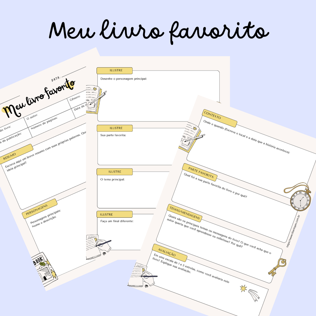 Transforme a leitura em uma experiência divertida e significativa com a atividade “Meu Livro Favorito”! Esse material pronto para imprimir é ideal para incentivar o hábito da leitura e desenvolver a interpretação textual de forma criativa e interativa.
